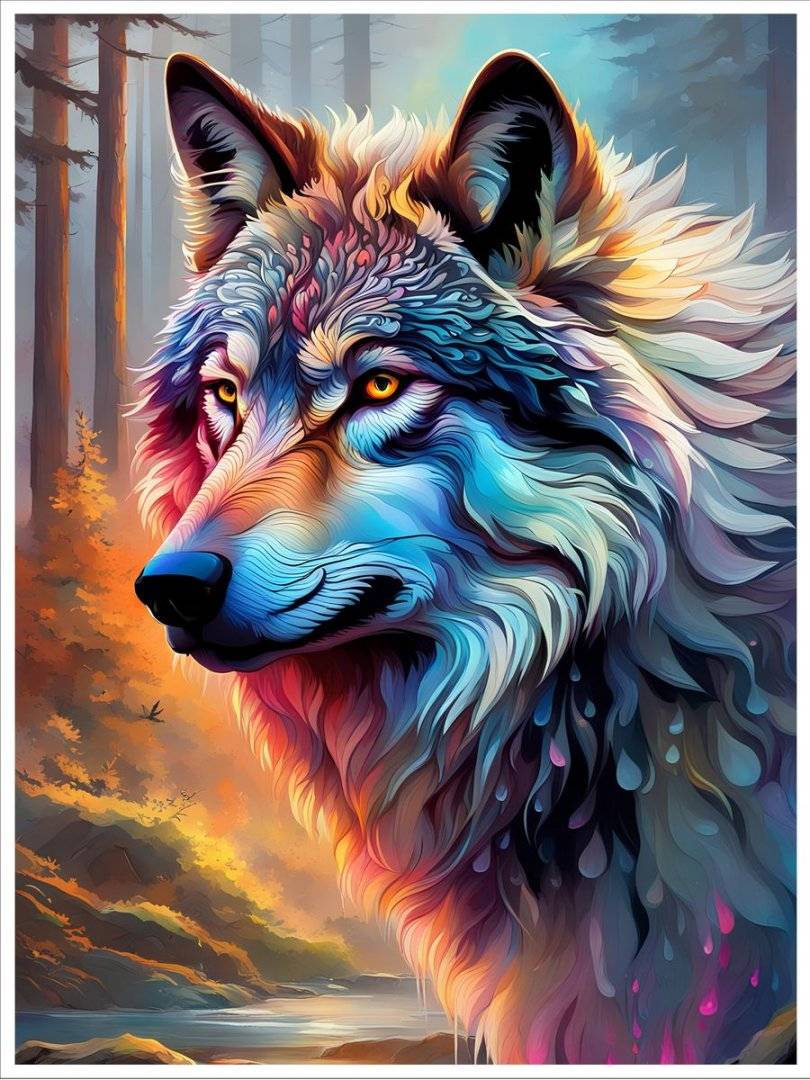 Poster abstract - Lup cu design artistic contemporan, ce evidențiază portretul unui lup unde se imbina armonios forme și culori vibrante. Este realizat prin print de calitate superioară, cu detalii clare si aspect perlat ceea ce ii poate reda posterului veleitatile unui tablou stilat. Creează o atmosferă elegantă și adaugă un accent vizual puternic în orice încăpere. Potrivit pentru living, dormitor, birou sau spatii de relaxare.