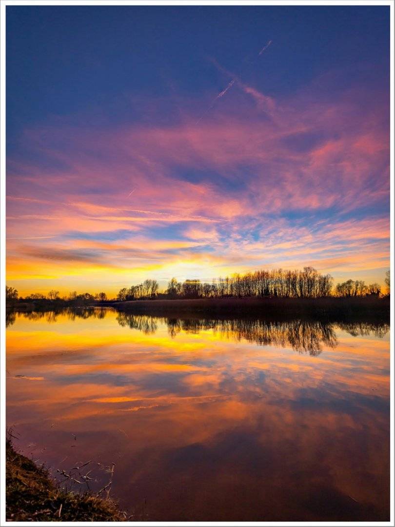 Acest poster cu tematică naturală, este un element decorativ ideal pentru perete, inspirat din frumusețea naturii. Imaginea surprinde un peisaj spectaculos, unde cerul se aprinde în nuanțe de culori calde, reflectându-se intens pe suprafața apei liniștite, creând o atmosferă romantică, calmă si armonioasa în orice încapere.