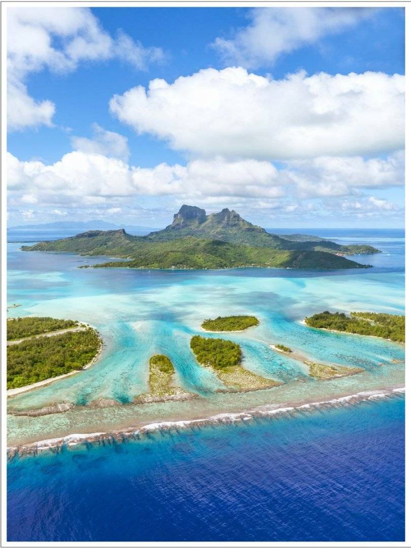 Acest poster cu tematică naturală, este un element decorativ ideal pentru perete, inspirat din frumusețea naturii si anume o lagună turcoaz cristalină, înconjurată de recifi de corali,cu muntele vulcanic Otemanu, ridicându-se spectaculos în centru. Imaginea surprinde un cadru natural relaxant, potrivit pentru a crea o atmosferă calmă și armonioasă în orice încapere.
