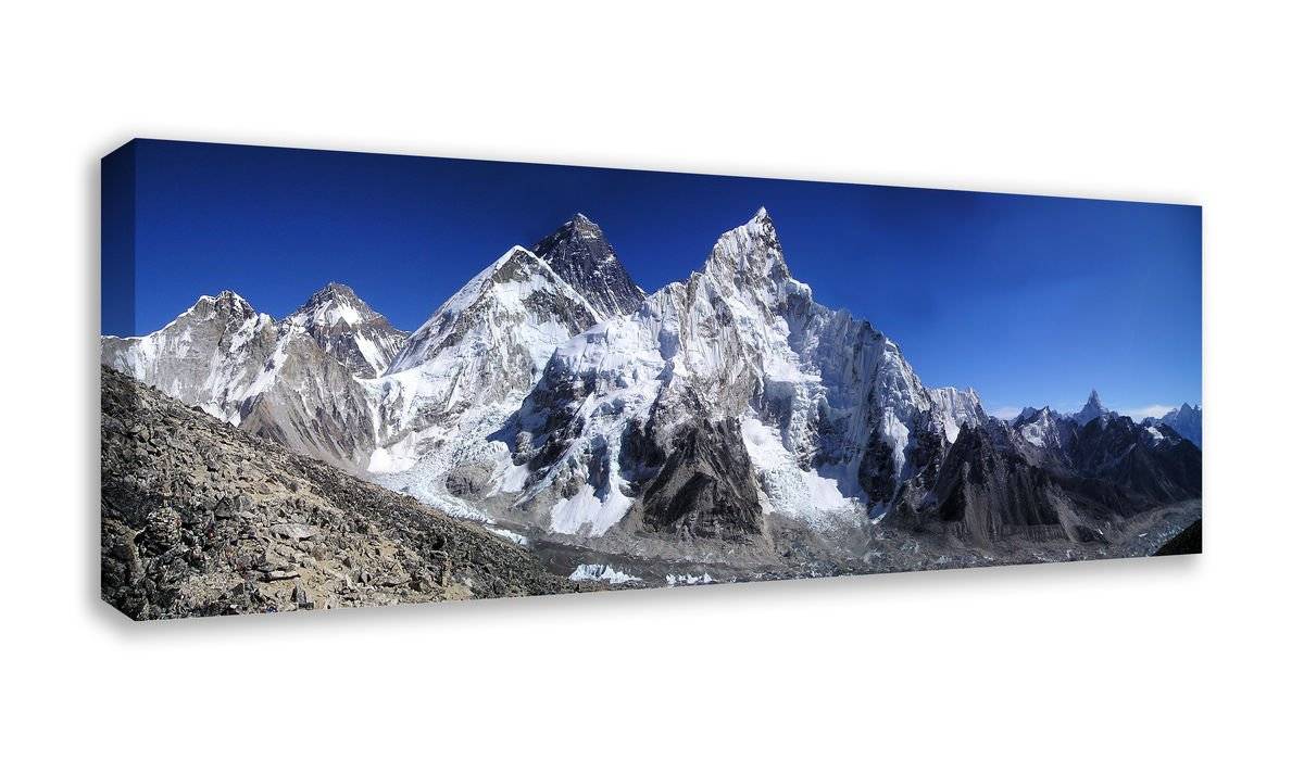 Tablou canvas „ Everest deasupra norilor” cu un peisaj montan impresionant, surprinde masivul Everest în toată splendoarea sa înghețată. Contrastul puternic dintre albul imaculat al zăpezii și albastrul profund al cerului oferă o senzație de libertate absolută și liniște interioară. Este decorul perfect pentru cei care iubesc muntele si aventura.