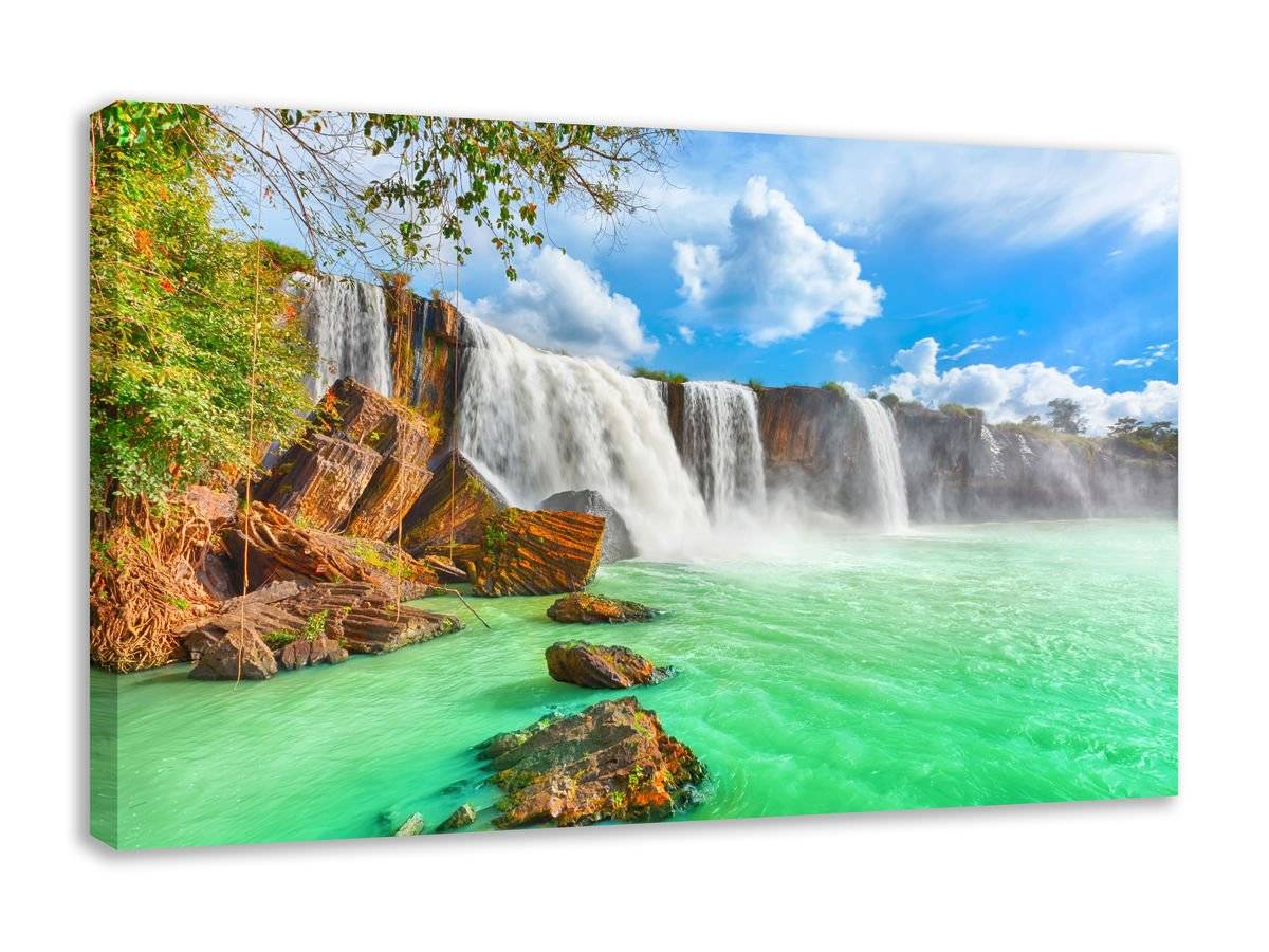 Această imagine este impresionantă! Surprinde cascada Dray Nur din Vietnam, un peisaj plin de energie, unde forța apei se întâlnește cu liniștea unei lagune de smarald. Este o piesă care aduce prospețime și o senzație de spațiu generos în orice încăpere.